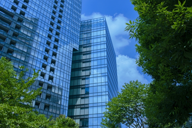 高層ビルの窓清掃をドローンで。作業員の方は高所に上らず、地上からドローンを操作するだけで、安全に作業出来ます。